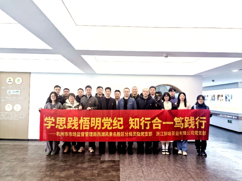為持續強化黨建引領(lǐng)作用,共同保護西湖龍井茶品牌,3月10日,獅峰茶業(yè)黨支部聯(lián)合景區市場(chǎng)監管分局靈隱黨支部開(kāi)展黨建共建活動(dòng),景區分局黨總支委員黃延虎、靈隱黨支部書(shū)記王煜、獅峰茶業(yè)黨支部書(shū)記陸耿林等17名黨員參加。